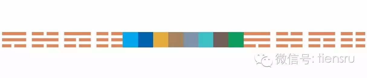 Цвета триграмм выражают 8 красок природы. Под ними располагается цветная полоса с логотипом компании.